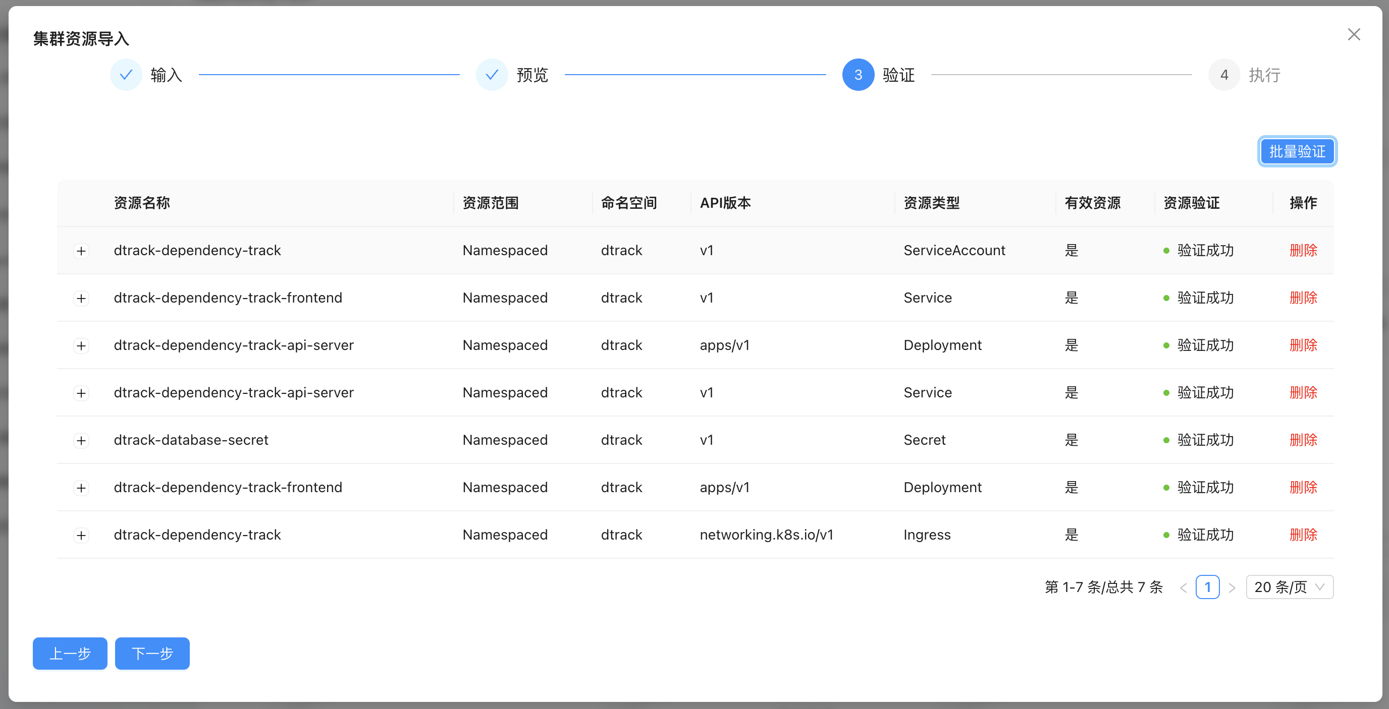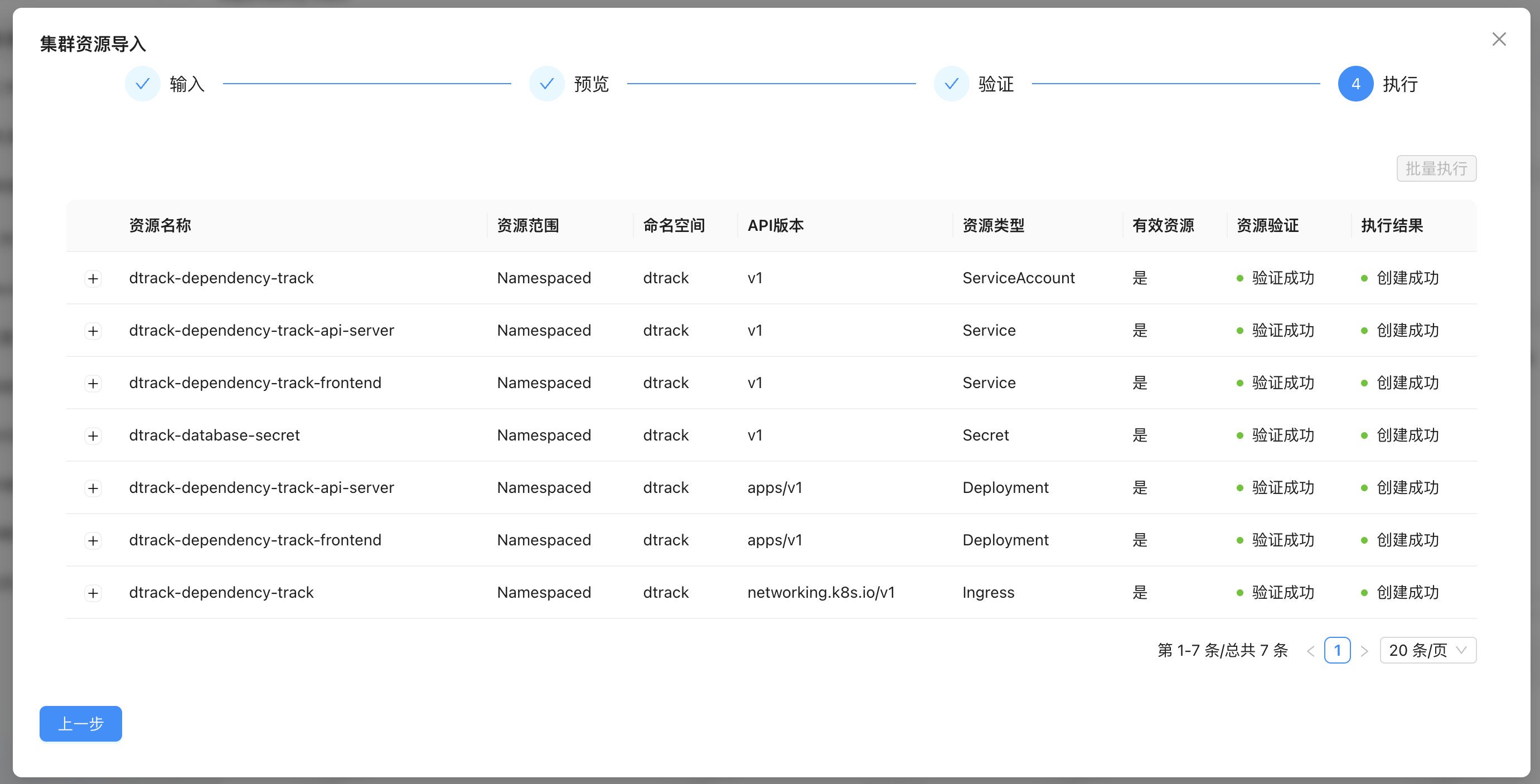 在批量验证没有问题后,点击下一步,并执行批量执行